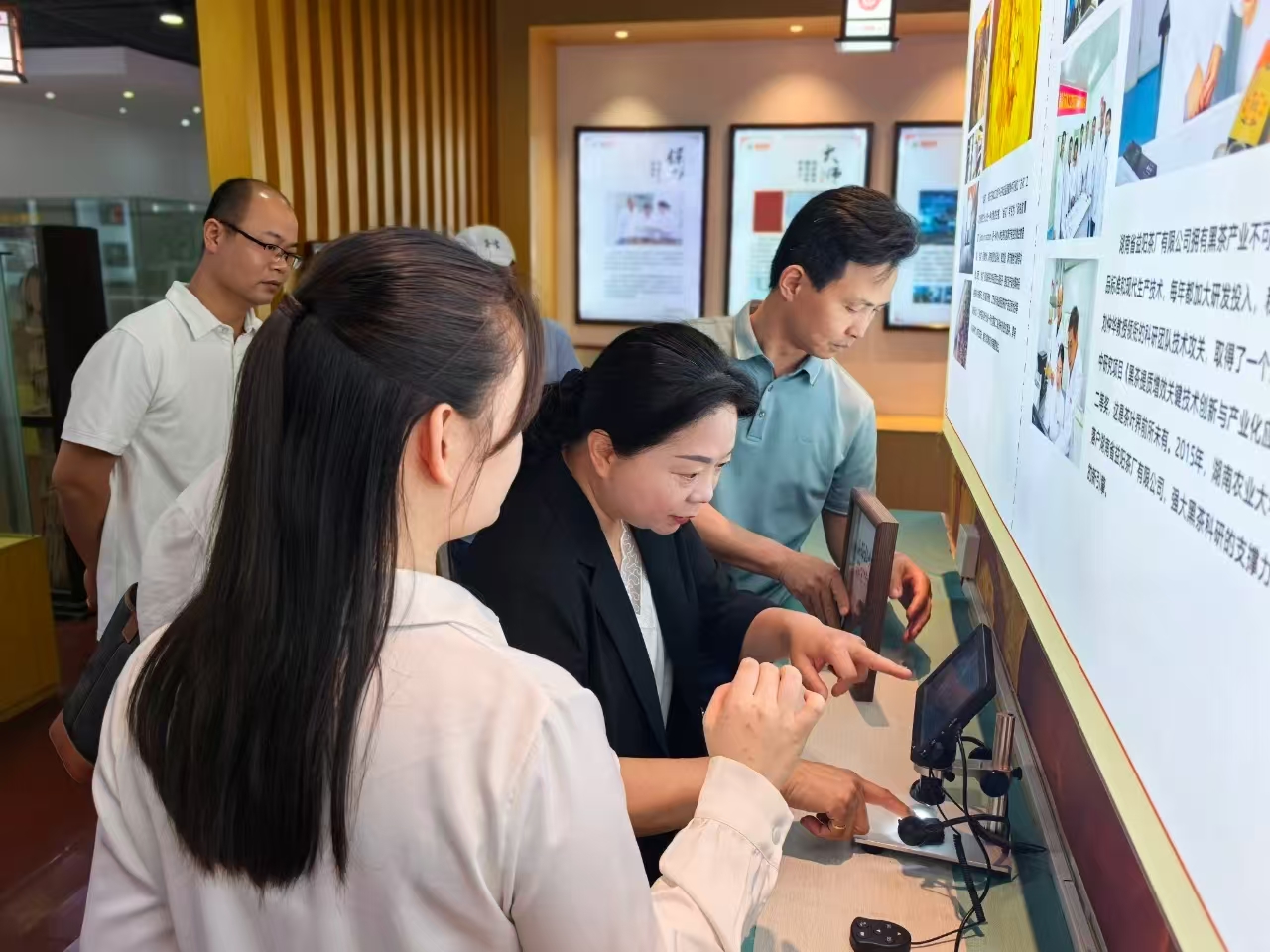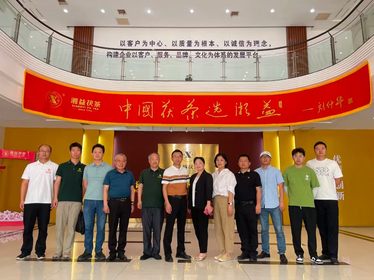 來訪嘉賓深入生產(chǎn)車間,實地參觀了篩分車間、壓制車間與金花酵庫。姚堅主席全程陪同下,并憑借其深厚的行業(yè)知識,深入講解從原料精選到茯磚茶“發(fā)花”等核心工藝要點,讓來賓們對茯磚茶嚴苛的制作工序有了更清晰的認識。在湘益茯茶博物館,來賓們通過詳實的文字、圖片以及歷史實物,感受茯磚茶制作技藝傳承數(shù)百年的深厚底蘊,深入了解益陽茶廠六十余載守護非遺技藝的堅守與突破。