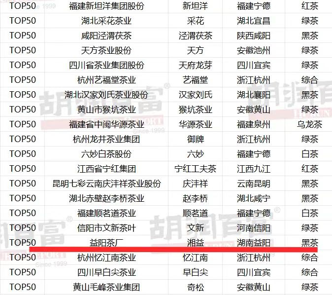 5月,胡潤研究院發(fā)布《2025胡潤中國茶葉領域典范企業(yè)榜》,益陽茶廠有限公司憑借其深厚的行業(yè)積淀、卓越的品牌價值及持續(xù)創(chuàng)新力再度躋身榜單,這是繼去年登榜后,益陽茶廠又一次獲此殊榮,進一步鞏固了其在中國黑茶領域的龍頭地位及行業(yè)標桿形象。