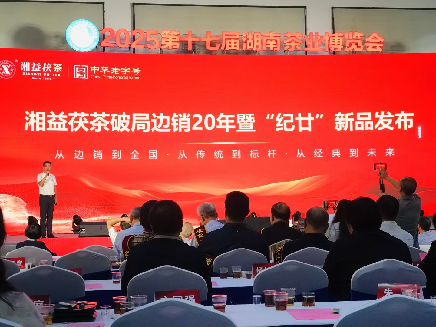 發(fā)布會現(xiàn)場,益陽茶廠總經(jīng)理助理袁緒斌詳細闡述了"紀廿"新品的研發(fā)背景與產(chǎn)品理念。二十年前,益陽茶廠懷著讓茯茶香飄萬里的初心,開啟了從邊銷茶到內(nèi)銷健康飲品的轉(zhuǎn)型之路,由劉杏益大師團隊率先突破"高端原料發(fā)花"技術(shù)難關(guān),研制出中國第一片中高檔茯磚茶[一品茯茶、極品茯茶、湘益茯茶],從此改寫了茯茶的歷史軌跡。2025年,是湖南黑茶內(nèi)銷20周年,益陽茶廠以「紀廿」之名,致敬二十載工藝傳承與內(nèi)銷啟航,“紀”為紀念、紀元;“廿”為二十,紀念二十年,「紀廿」禮盒將三款傳奇產(chǎn)品吉品茯茶、一品茯茶、湘益茯茶凝于一盒,開啟茯茶新紀元。
