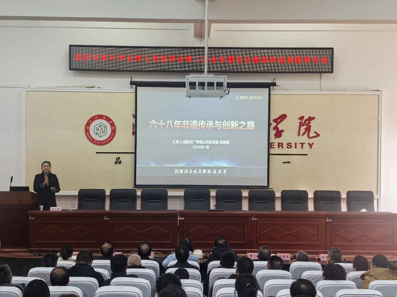 1月23日,益陽市茶葉學(xué)會第七屆理事會第三次會議暨安化黑茶科技創(chuàng)新研討會在湖南城市學(xué)院召開。作為學(xué)會副理事長單位,公司董事長彭雄根、總經(jīng)理余智勇、黨委書記兼常務(wù)副總經(jīng)理徐迪軍、首席專家劉杏益、副總經(jīng)理郝建等領(lǐng)導(dǎo)及技術(shù)骨干出席會議,與理事會成員、行業(yè)專家及同仁共商益陽茶業(yè)發(fā)展大計。本次理事會由公司黨委書記、常務(wù)副總經(jīng)理徐迪軍主持。會議審議通過了學(xué)會年度工作報告、財務(wù)報告及人事調(diào)整議案,并為新晉理事單位授牌。在隆重的表彰環(huán)節(jié),會議宣讀了《關(guān)于表彰2025年度“點贊益陽茶”優(yōu)秀成果的決定》。我公司報送的項目成果喜獲多項榮譽:朱輝、余智勇同志的《國慶中秋雙節(jié)暨體驗館煥新茶話會》獲評“優(yōu)秀特色茶會”;劉杏益大師的《劉大師說茶系列》獲評“優(yōu)秀科普短視頻”;黃甜同志的《“新疆是個好地方”援疆活動》獲評“優(yōu)秀科普展覽/活動”。這些榮譽是對公司長期以來堅持科技創(chuàng)新、文化普及與社會責(zé)任實踐的高度認(rèn)可。隨后舉行的安化黑茶科技創(chuàng)新研討會上,公司產(chǎn)品研發(fā)部副經(jīng)理、中級農(nóng)藝師張婭莉代表公司,以《益陽茶廠有限公司:六十八年非遺傳承與創(chuàng)新之路》為題,向與會嘉賓分享了我公司的科技創(chuàng)新經(jīng)驗。報告系統(tǒng)梳理了公司自1958年創(chuàng)立以來,在茯磚茶制作技藝這一國家級非物質(zhì)文化遺產(chǎn)傳承保護(hù)中所取得的里程碑式突破,并重點介紹了近年來依托傳統(tǒng)技藝,融合現(xiàn)代科技,在生產(chǎn)線智能化升級、高嫩原料發(fā)花技術(shù)攻克、產(chǎn)品形態(tài)與品類創(chuàng)新等方面取得的系列成果,展現(xiàn)了我公司作為老字號龍頭企業(yè)在“三茶統(tǒng)籌”發(fā)展道路上的探索與擔(dān)當(dāng)。此次會議既是行業(yè)交流的盛會,也是對我公司發(fā)展成績的集中檢閱。未來,益陽茶廠有限公司將繼續(xù)堅守“湘益”品質(zhì),秉承非遺技藝精髓,深化科技創(chuàng)新驅(qū)動,積極履行社會責(zé)任,與學(xué)會及各會員單位攜手并肩,共同為推動益陽茶產(chǎn)業(yè)、安化黑茶產(chǎn)業(yè)的高質(zhì)量發(fā)展與文化繁榮貢獻(xiàn)更大力量。